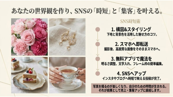 SNS投稿時短術も身に付けていただきたいため